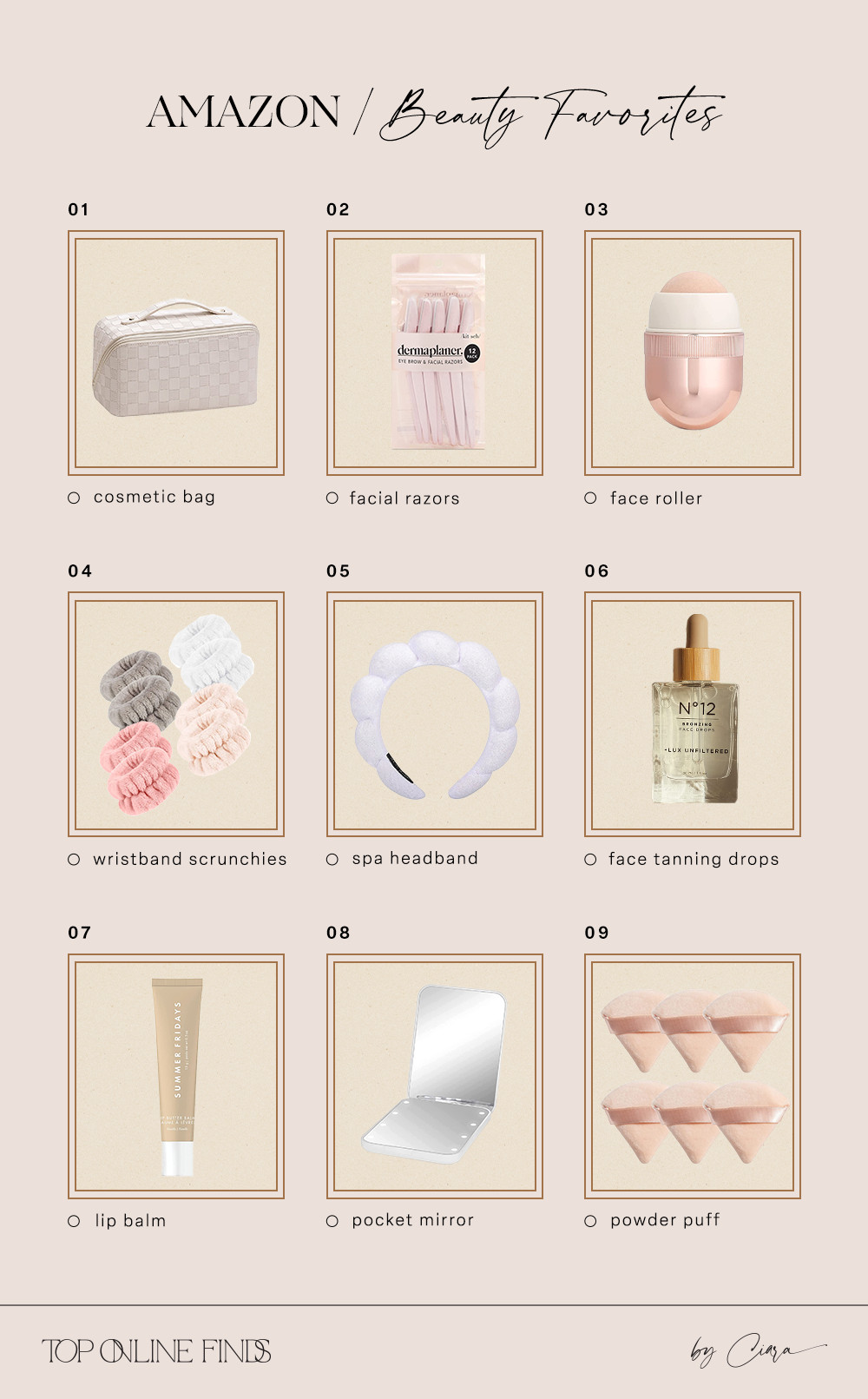 Who knew Amazon had such a great selection of beauty items? I found some of my favorite brands on Amazon like Summer Fridays and Lux Unfiltered. Not to mention, you can find some great tools like these dermaplaning face razors that get off any peach fuzz so your makeup and skincare goes on smoother. These microfiber wristbands are a game changer for washing your face! They keep water from dripping down your arm and making a huge mess. You can also easily toss this oil absorbing face roller in your purse of makeup bag to absorb any excess oil on your skin throughout the day.